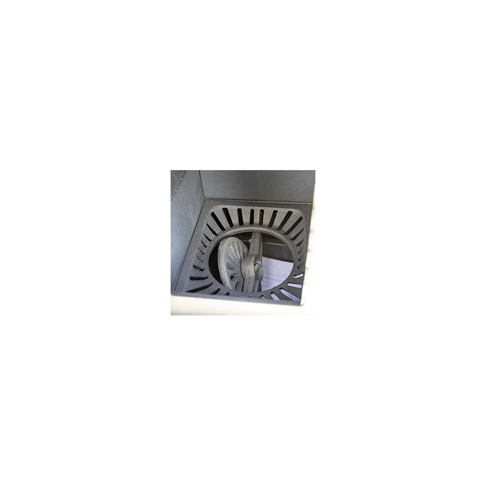 Praktisk og grei vedkomfyr fra Teba Romslig brennkammer som består av støpejern. Uttakbar askeskuffe befinner seg rett under.